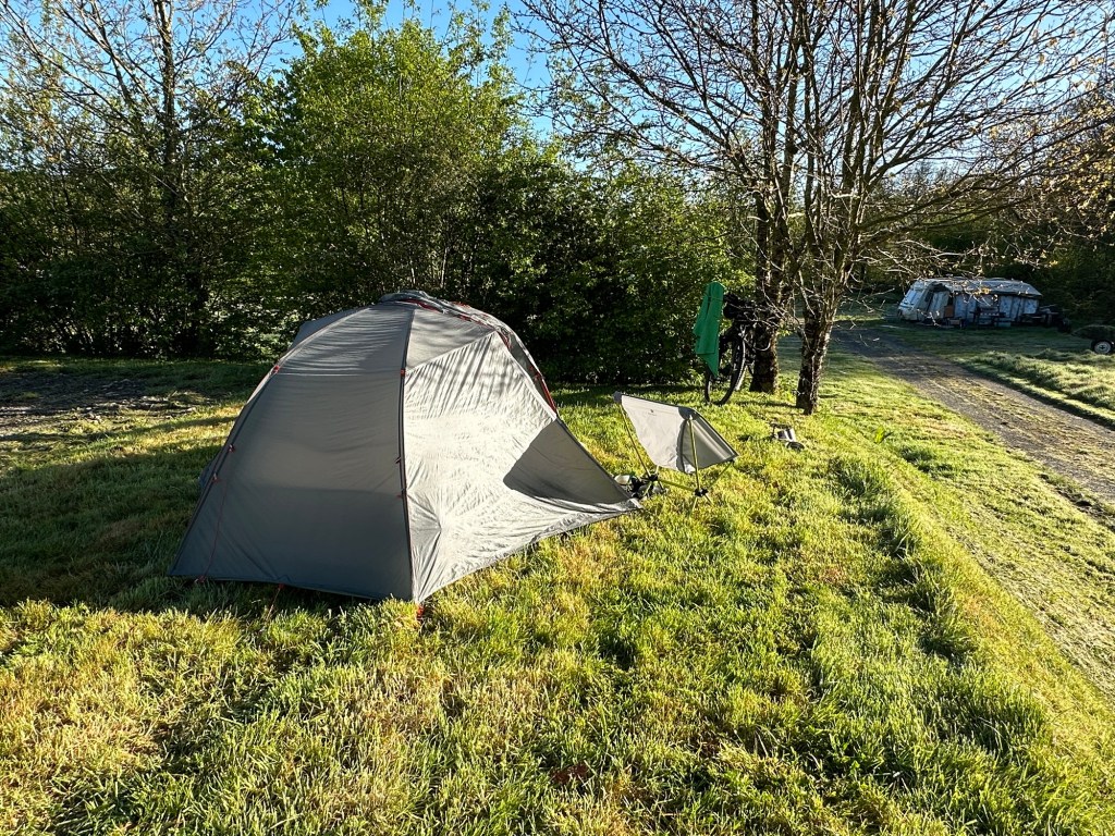 While I was pitching my tent, a resident cat and dog decided my tent looked like a cozy spot