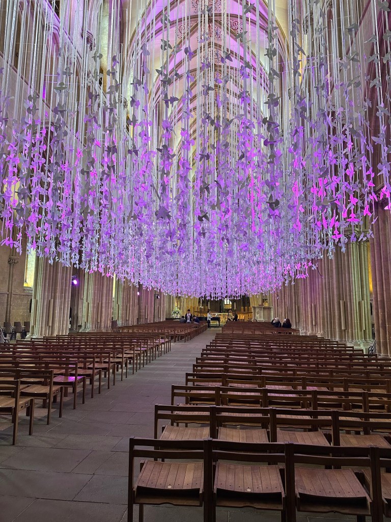 While we there the cathedral had a beautiful exhibit of thousands of paper doves carrying messages of peace, hope and love suspended in an illuminated installation.