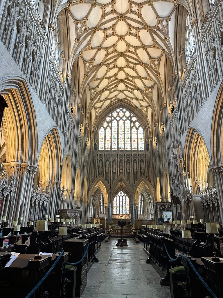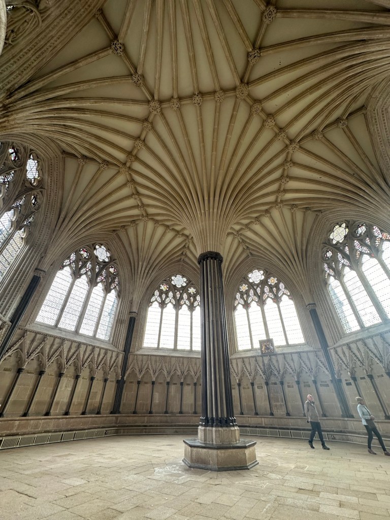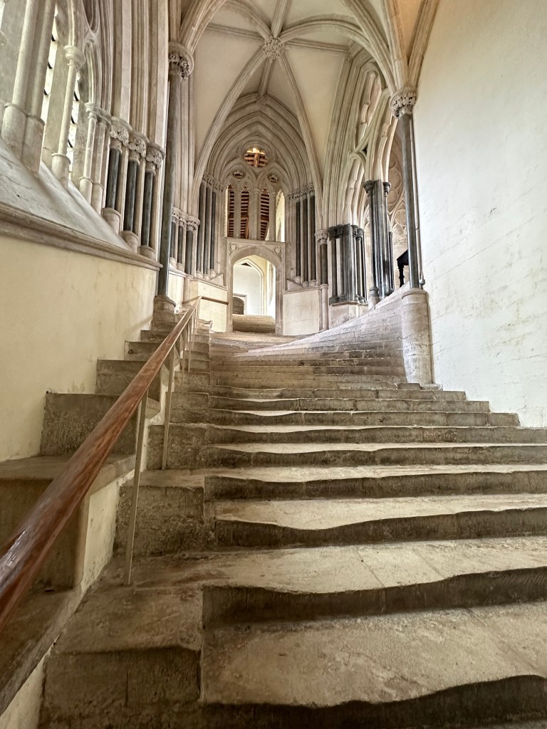 The cathedral was built from 1176-1490. It is considered one of the most beautiful of English cathedrals and I would agree with that. The Chapter House was particularly impressive with its geometric style of architecture. The steps up to the Chapter House are well worn by centuries of footsteps.