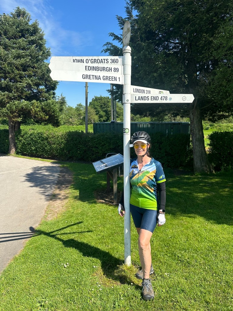 I crossed the border into Scotland at Gretna later that afternoon and met a couple of ladies who were following the Sustrans LEJOG route on road bikes with support from their husbands who were in a camper van. The ladies took my photograph and I took theirs. We chatted for a while and I felt a momentary pang of wishing I had Jacques with me as support. I was feeling a bit vulnerable after the crash.