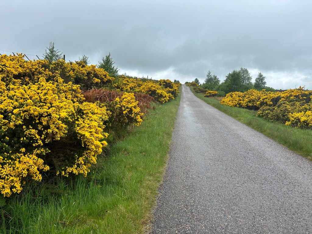 After warming up, I set off once again into the rain but enjoyed riding through some lovely lanes filled with gorst bushes.