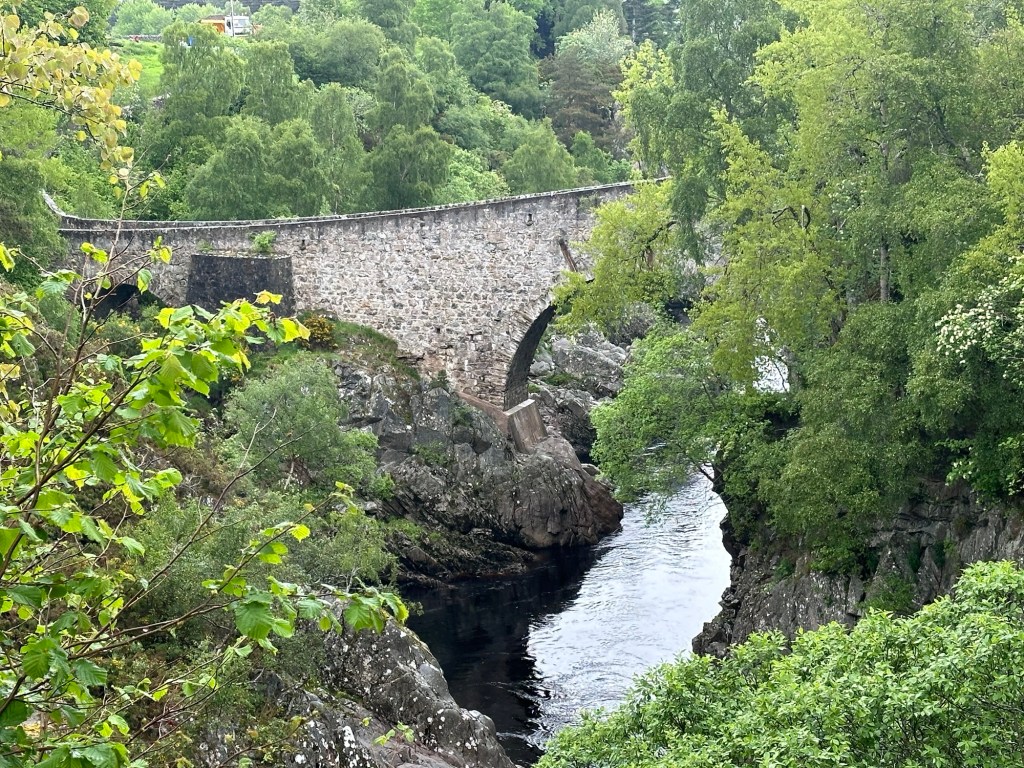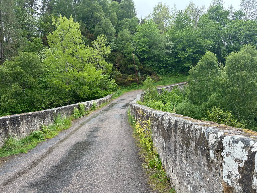 My route took me over the historic 18th century Dulsie Bridge. I stopped to take some photos and then crossed the bridge and passed a farmhouse that used to be an inn. Poet Robert Burns was believed to have stayed at the Kingβs Inn, during his tour of the Highlands in 1787.