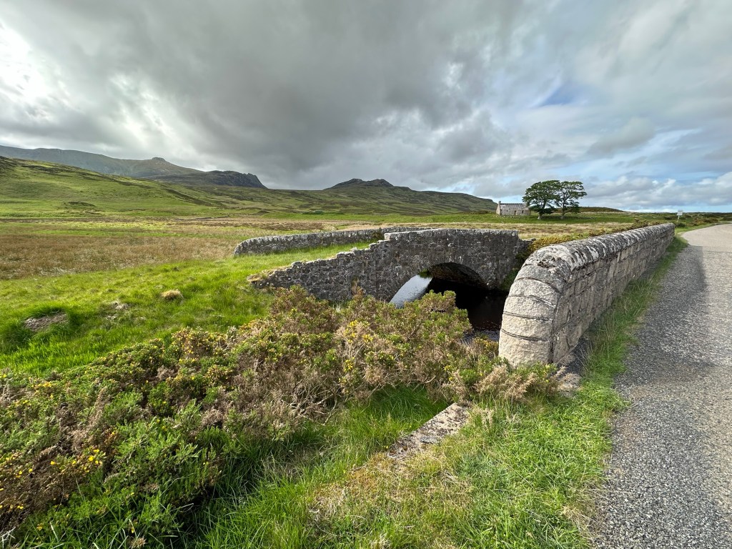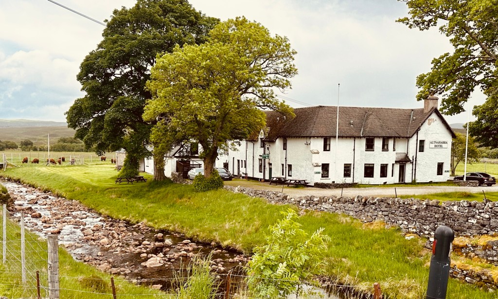 The Alnaharra Hotel was closed for a special event but the very kind chef allowed me to use the bathroom and offered to make us coffee; however, we decided to put the kettle on in the car park where Jason had parked his van. After lunch I started heading north to our destination of Tongue on the north coast.