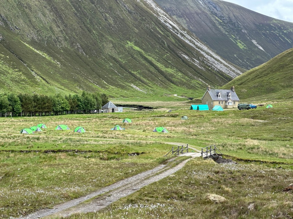 On Wednesday May 29th I woke to discover a swarm of midges had established themselves between my tent and the flysheet. I put on my midge net and was fully dressed before venturing outside the tent. It was still raining so I decided to use one of the bothys as a shelter while packing up my camping gear and having a cup of tea.