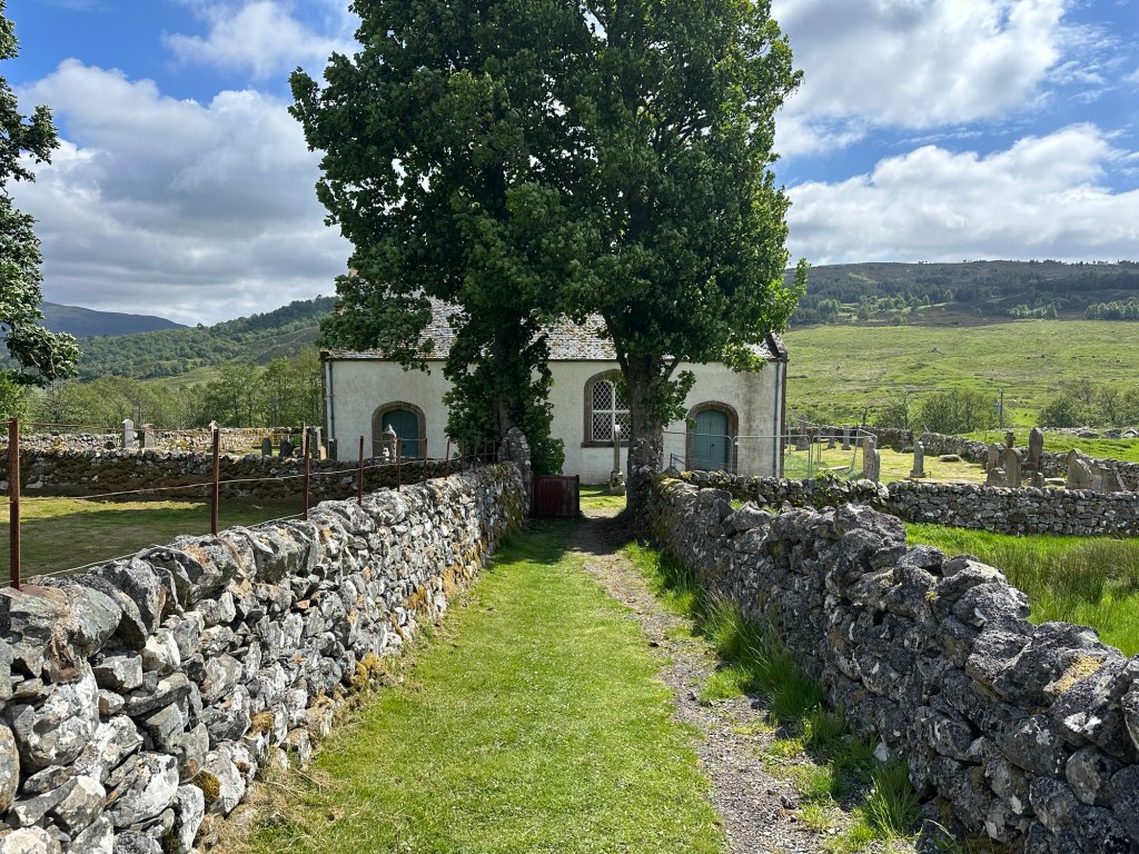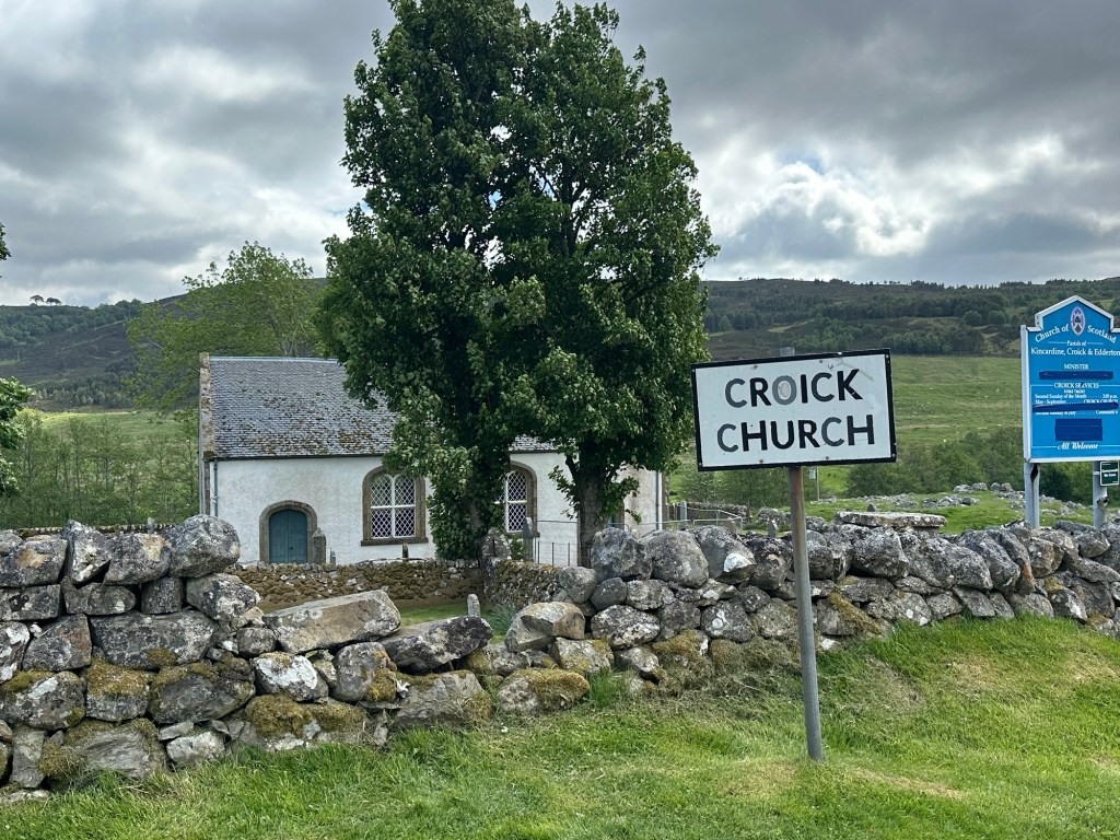 Duncan and I looked around the churchyard and read the names and messages that were scratched into the glass by crofters who had taken shelter at the lee of the church after they were evicted from Glencalvie in 1845 during The Highland Clearances to make way for sheep farming. It was a sad time in Scotland and led to the destruction of the clan society. Many of the crofters moved to coastal areas or emigrated.